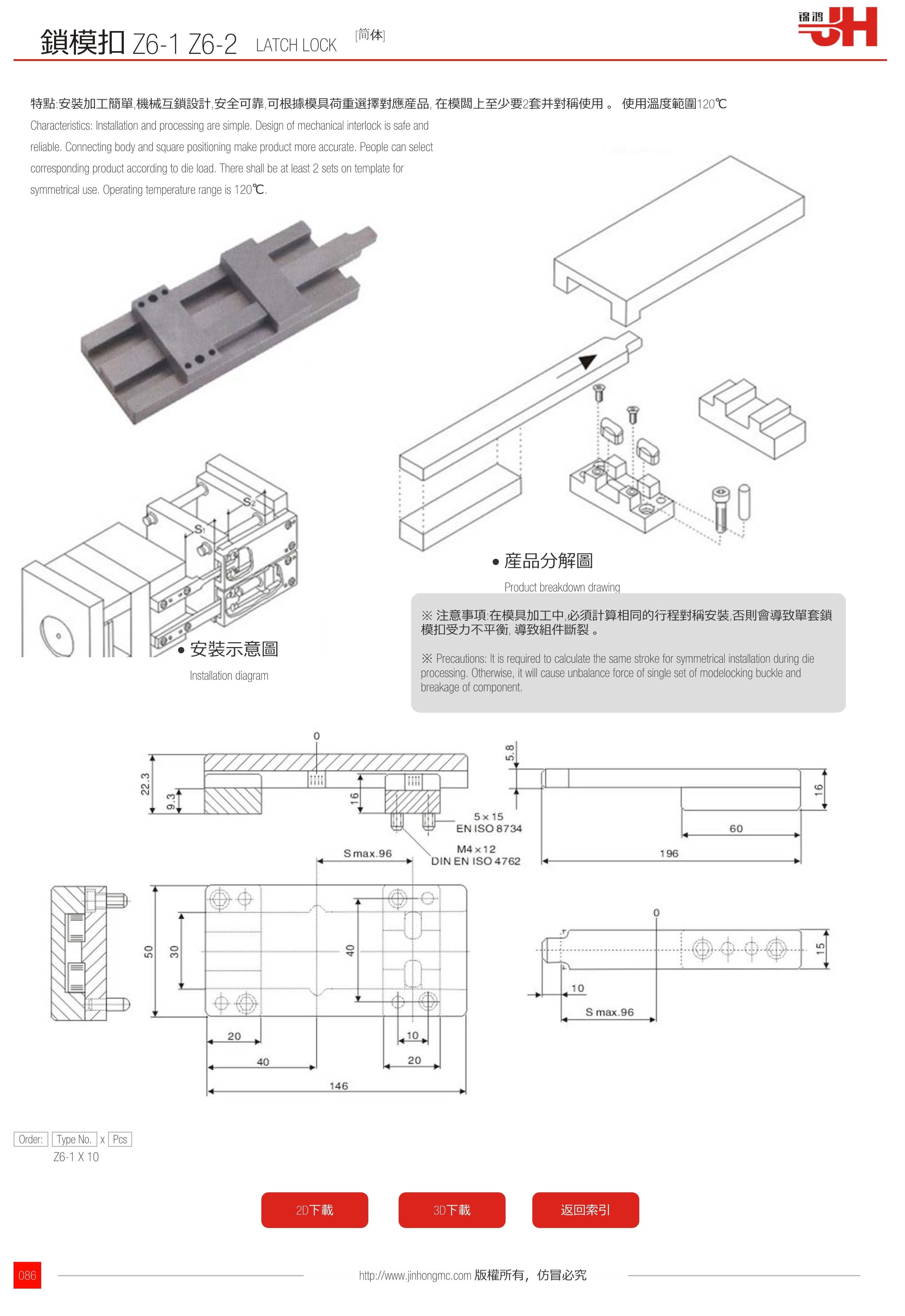 ※ 注意事項(xiàng):在模具加工中,必須計(jì)算相同的行程對稱安裝,否則會(huì)導(dǎo)致單套鎖模扣受力不平衡, 導(dǎo)致組件斷裂 。