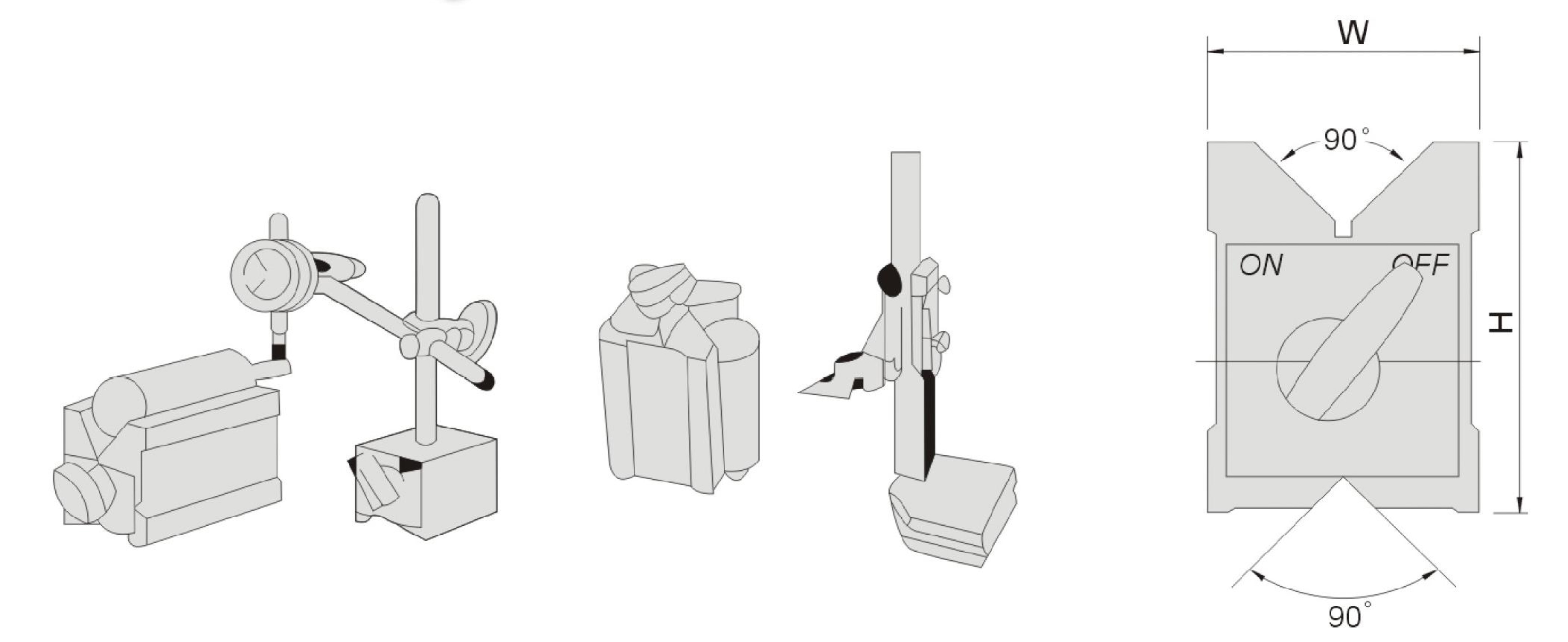 •  磁性V型臺帶有磁性,可供圓型或方型45度工件吸磁用途,用于磨床或劃線之用