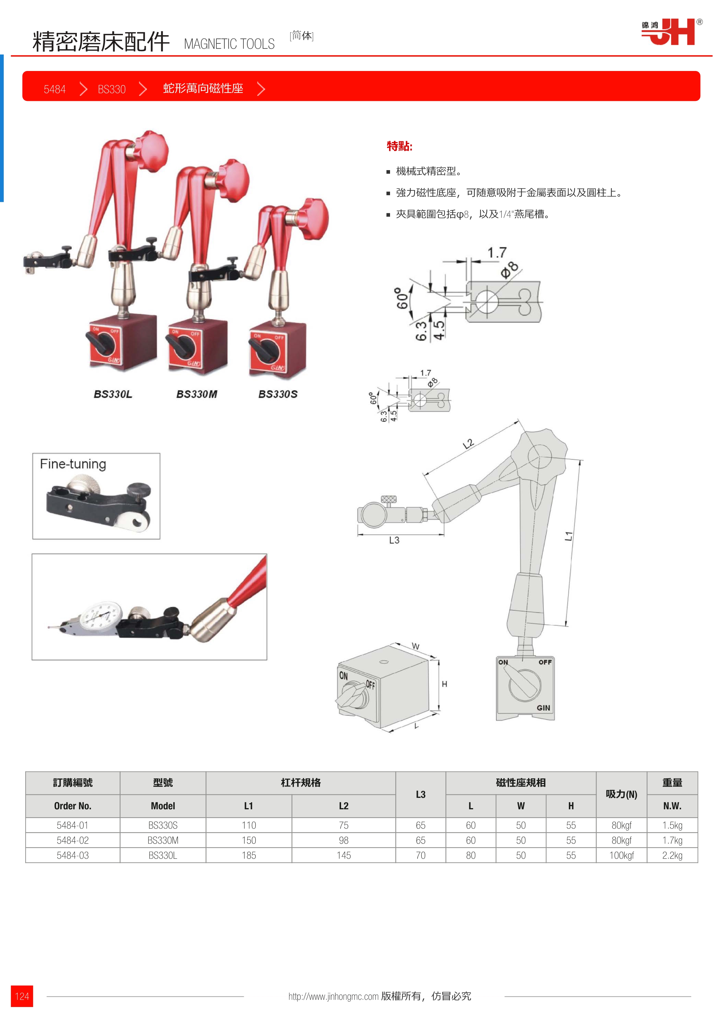 | 5484-01 | BS330S | 110 | 75 | 65 | 60 | 50 | 55 | 80kgf | 1.5kg |