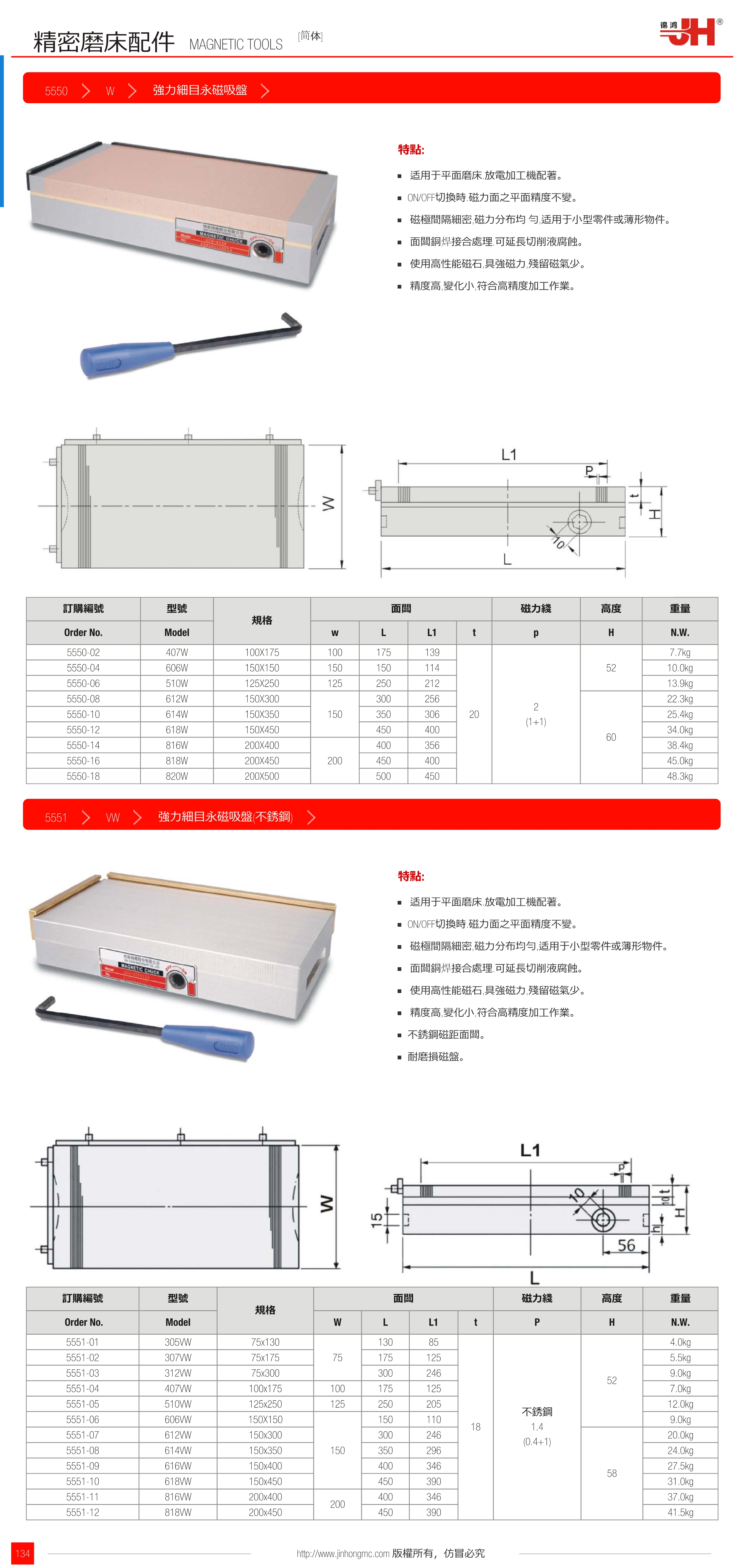 訂購:強力細目永磁吸盤 5550 W