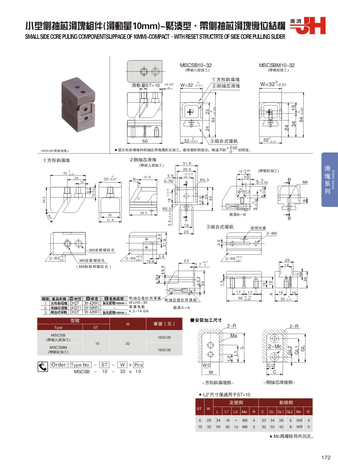 訂購(gòu):172-小型側(cè)抽芯滑塊組件(滑動(dòng)量10mm)-緊湊型˙帶側(cè)抽芯滑塊復(fù)位結(jié)構(gòu) MSCSB
