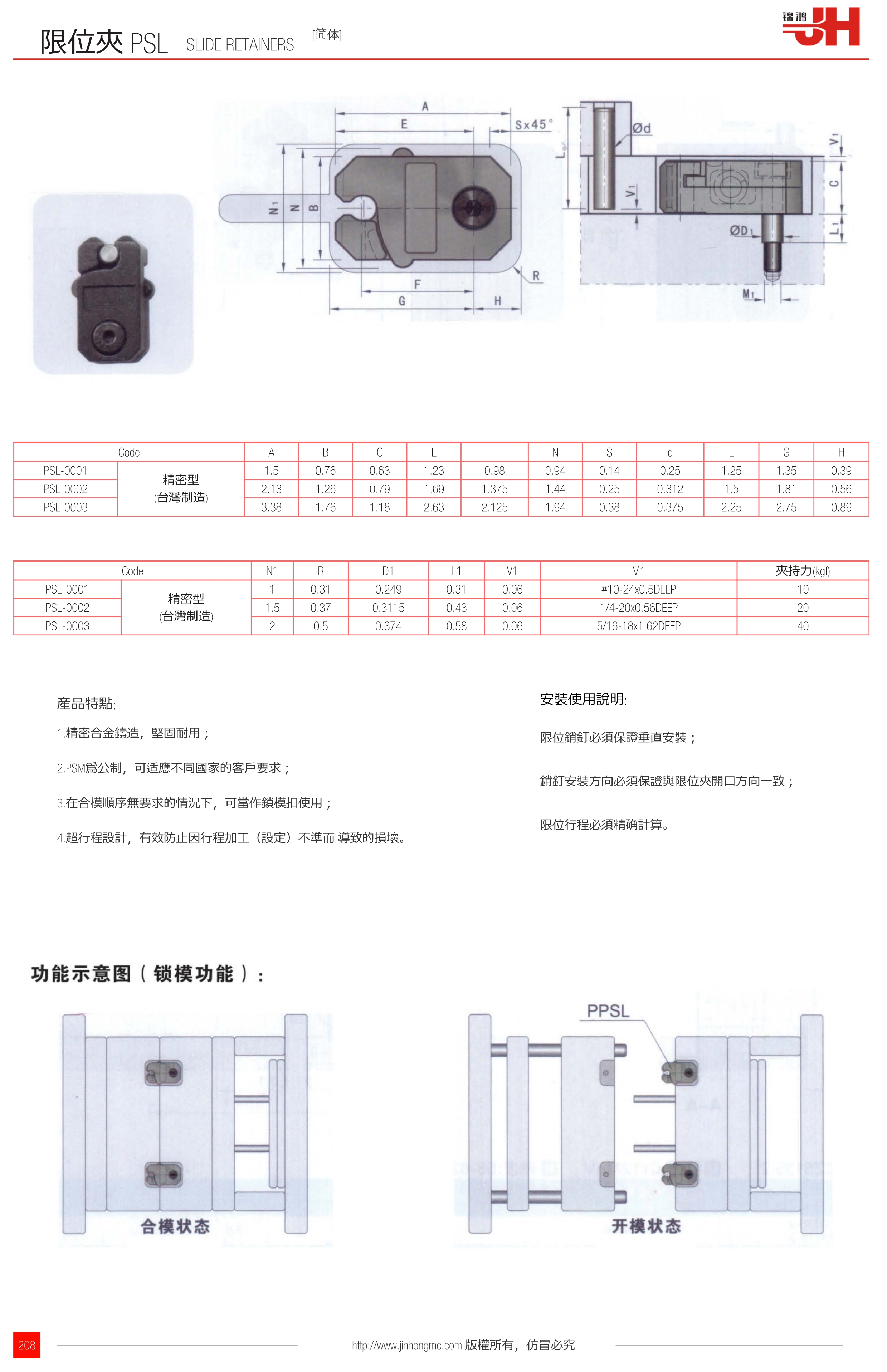 | PSL-0001 | 精密型 (臺(tái)灣制造) | 1 | 0.31 | 0.249 | 0.31 | 0.06 | #10-24x0.5DEEP | 10 |