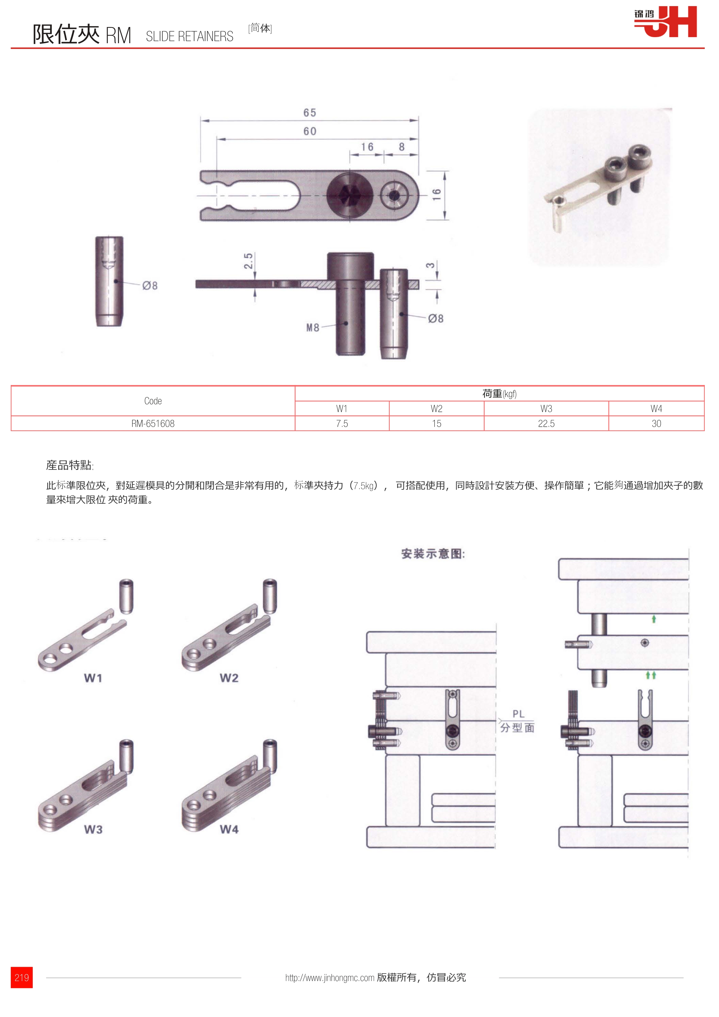 此標準限位夾,對延遲模具的分開和閉合是非常有用的,標準夾持力(7.5kg), 可搭配使用,同時設計安裝方便、操作簡單;它能夠通過增加夾子的數量來增大限位 夾的荷重。