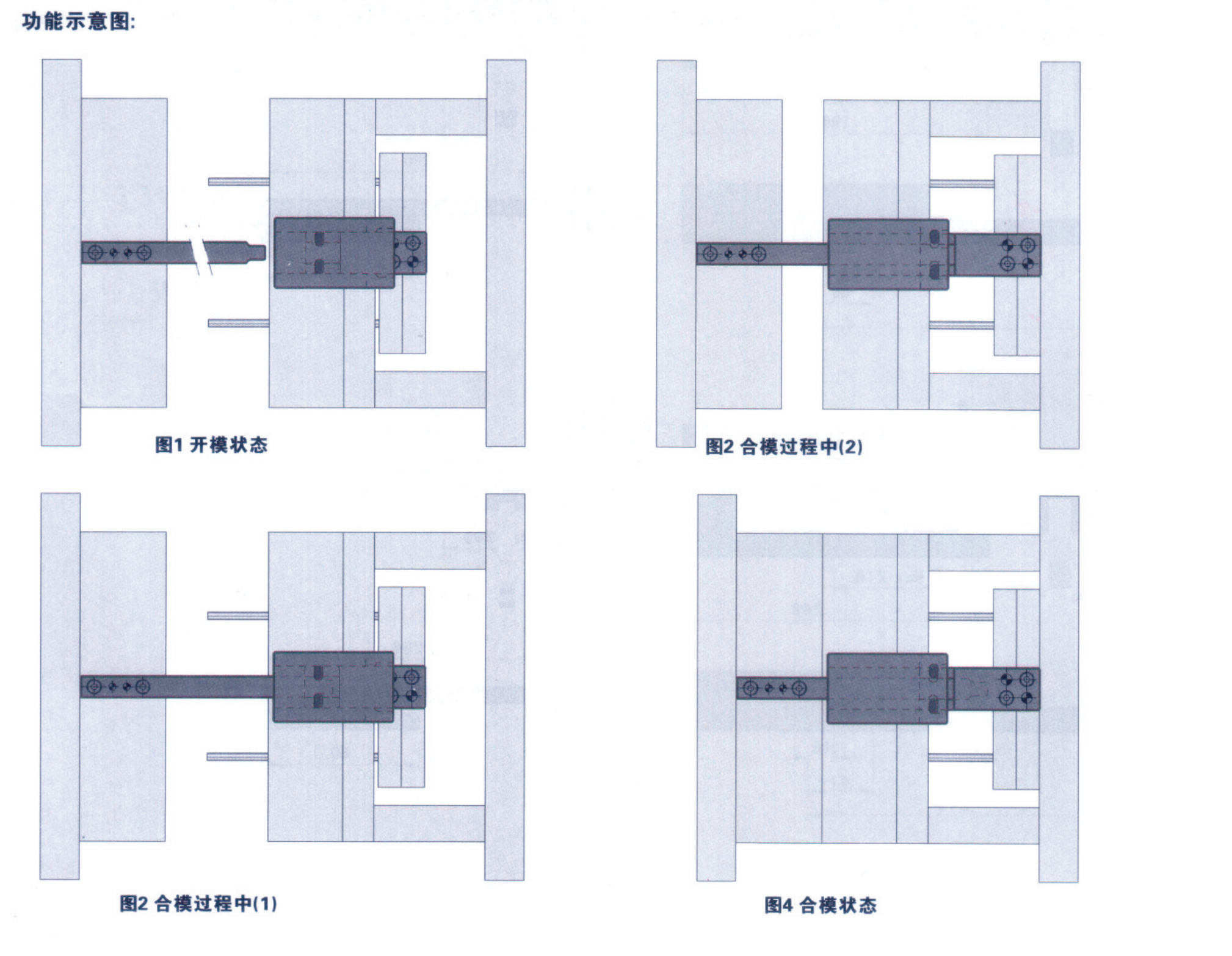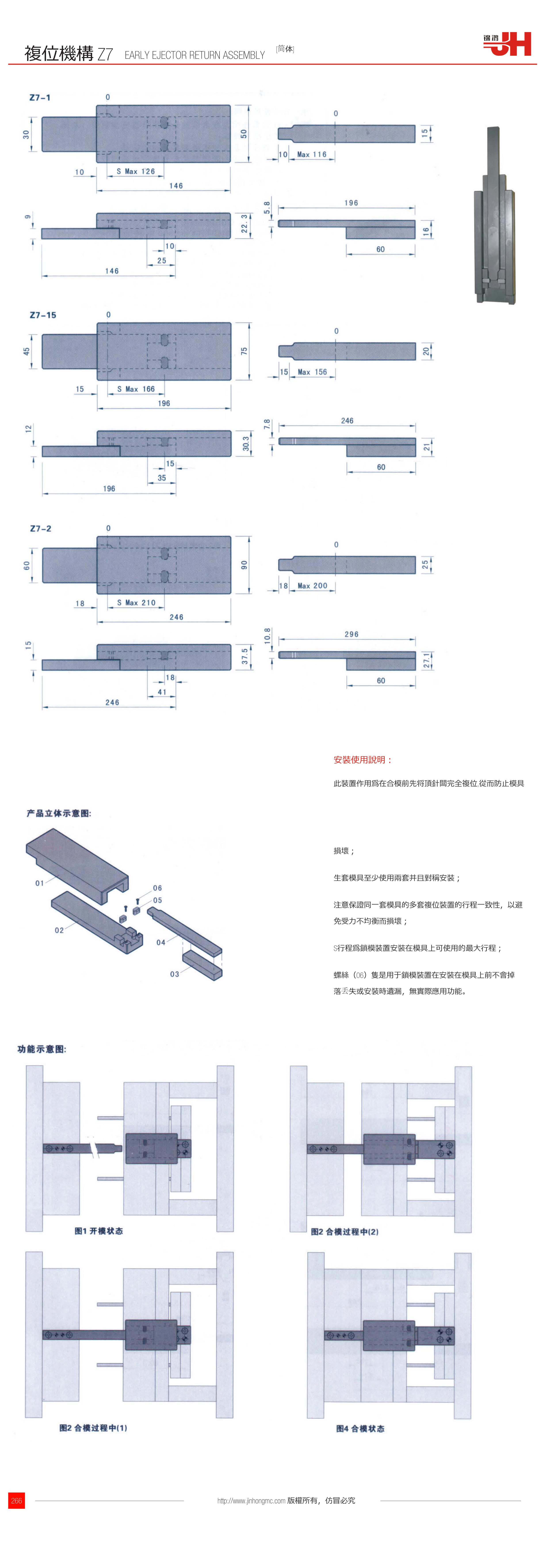 此裝置作用為在合模前先將頂針板完全復位,從而防止模具損壞;