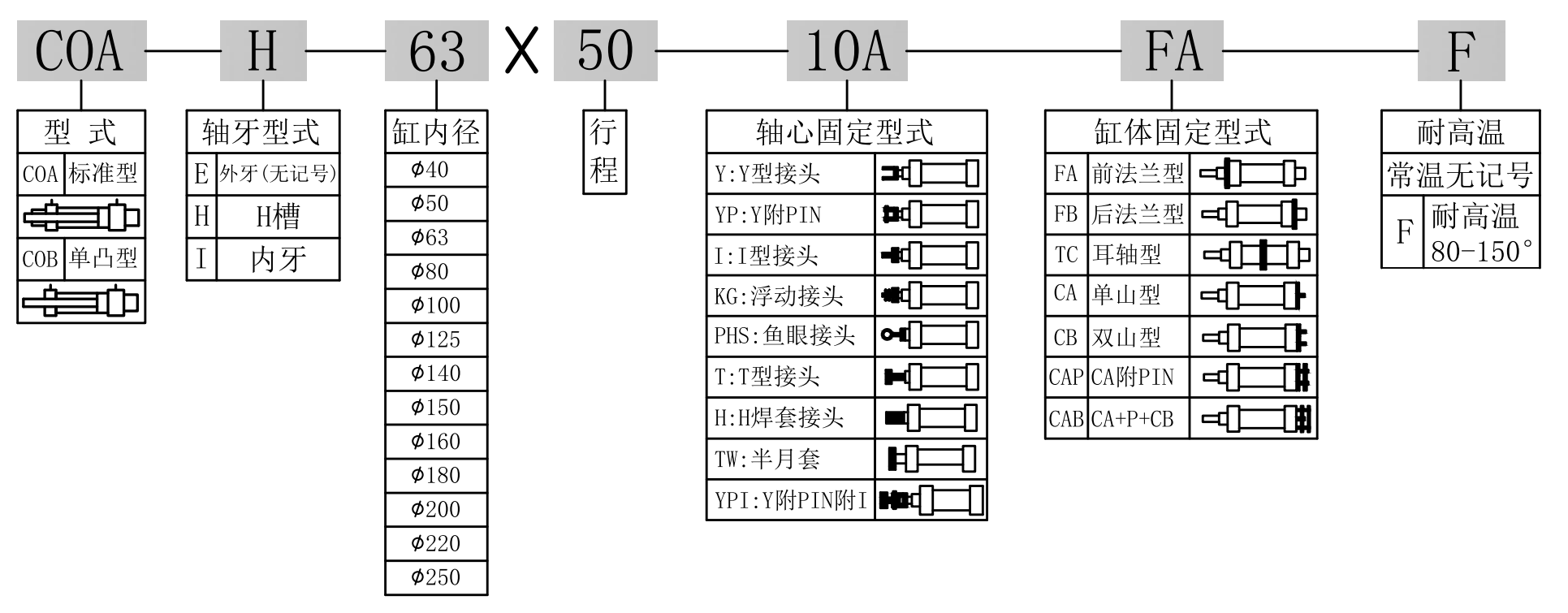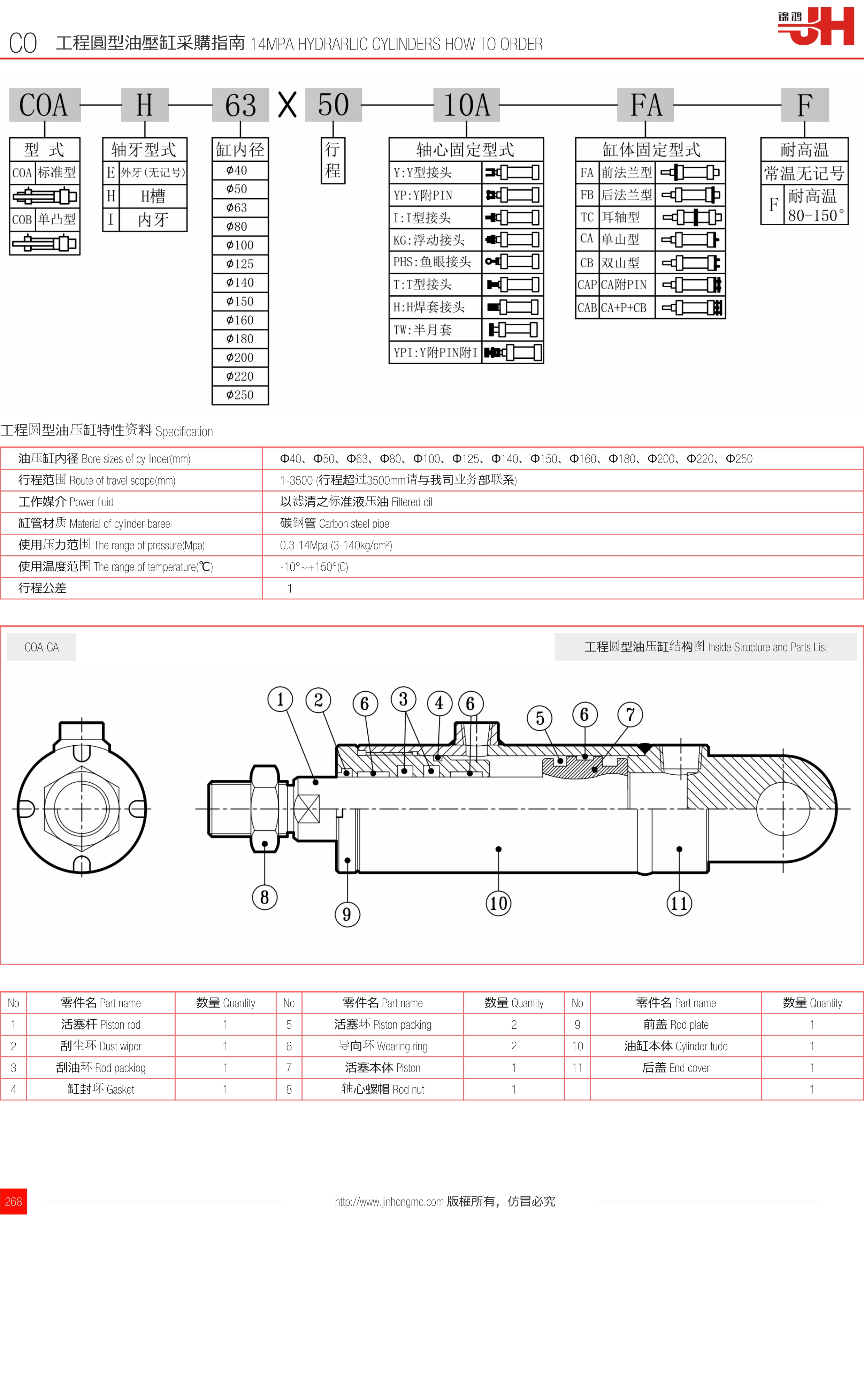 | 油壓缸內(nèi)徑 Bore sizes of cy linder(mm) | Φ40、Φ50、Φ63、Φ80、Φ100、Φ125、Φ140、Φ150、Φ160、Φ180、Φ200、Φ220、Φ250 |