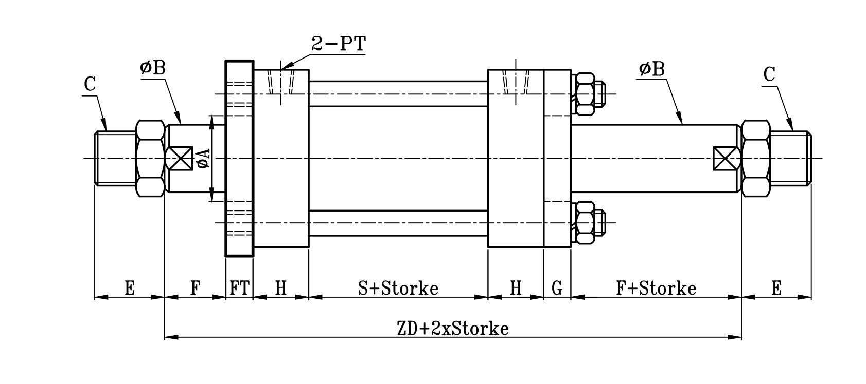 | 缸徑 BORE | ΦA | ΦB | C | E | F | G | H | N | P | P1 | PT | S | Z | ZD | ΦFD | FT | FR | FX | FY | FZ |